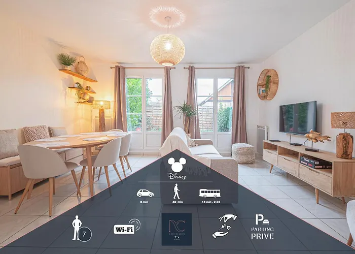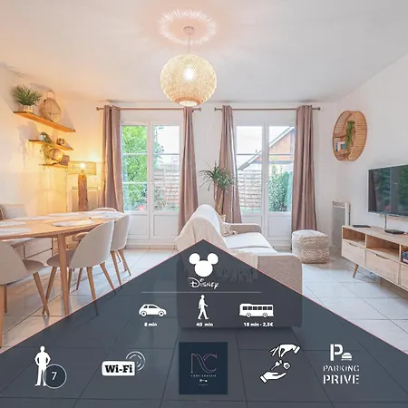 *Disneyland-Paris* 7Pers, Wifi, Parking lägenhet erbjuder ett komplett kök samt rum med te/kaffebryggare, sitthörna och Wi-Fi. Det är beläget 3 km från Buffalo Bill's Wild West Show och 10 minuters bilfärd från Aquarium Sea Life Paris Val D'Europe.